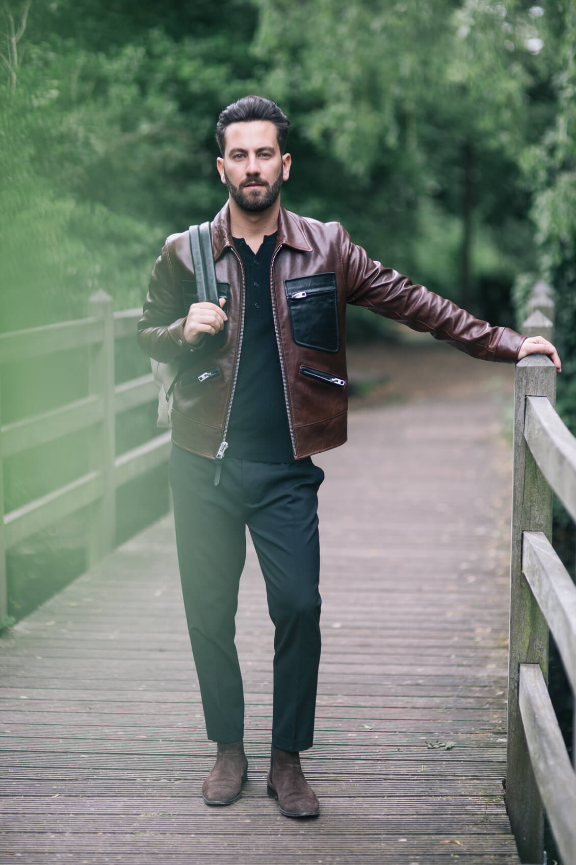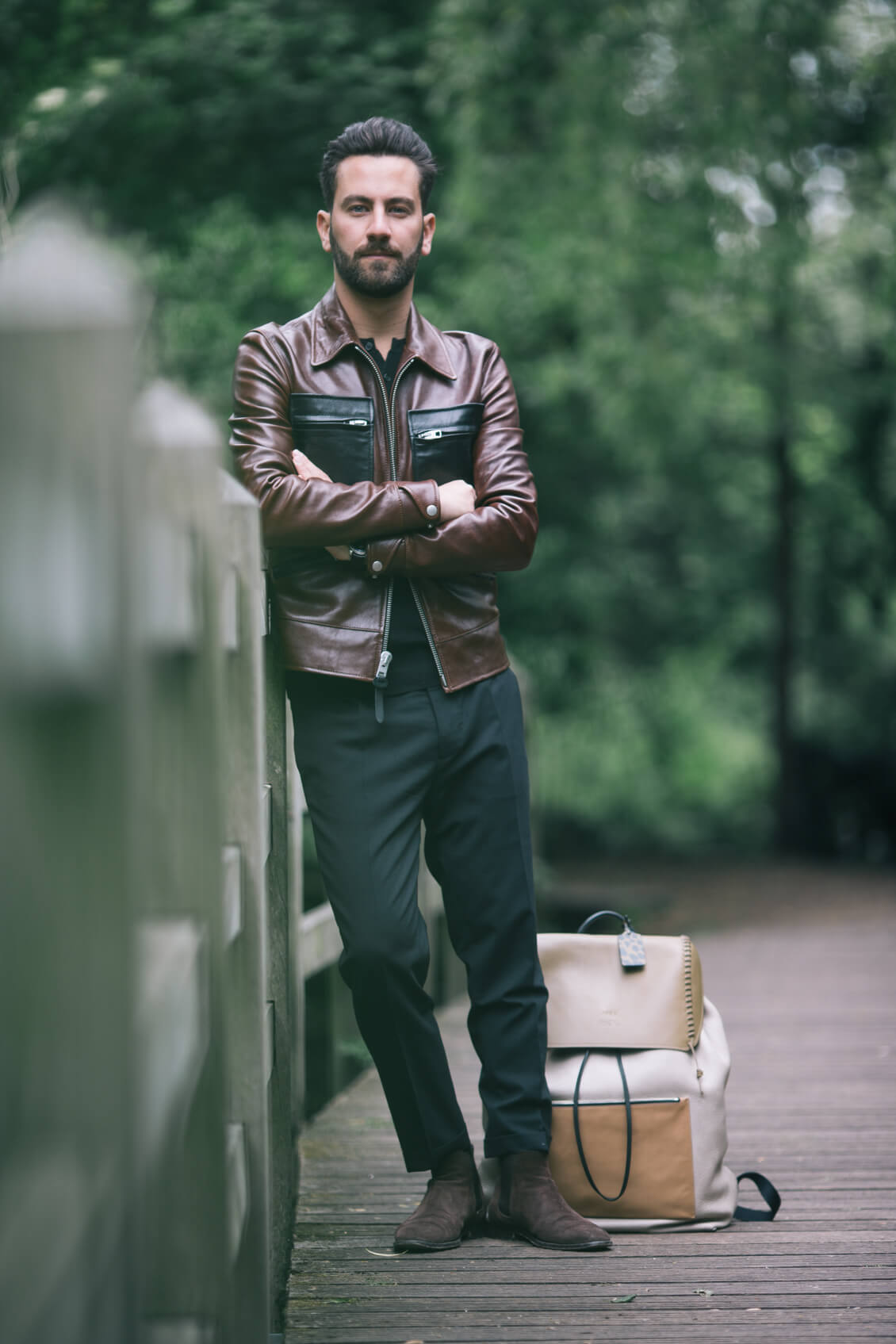 Now it is the time when your new backpack comes in and puts all your other bags to shame… Coach backpack brings designer luxury into everyday wear. Crafted from soft-grained leather with earth and black toned details and a large front pocket for easy access. Effortlessly sophisticated style meets utility and authenticity. As for the leather jacket, it speaks for itself. A sharply designed piece, a masterclass in contemporary design that epitomizes classic-cool style. It has a sleek texture with a casual appearance and top collar to create a distinctive cover-up that will elevate your outerwear collection to new heights. Yes, ’90s New York splendour.