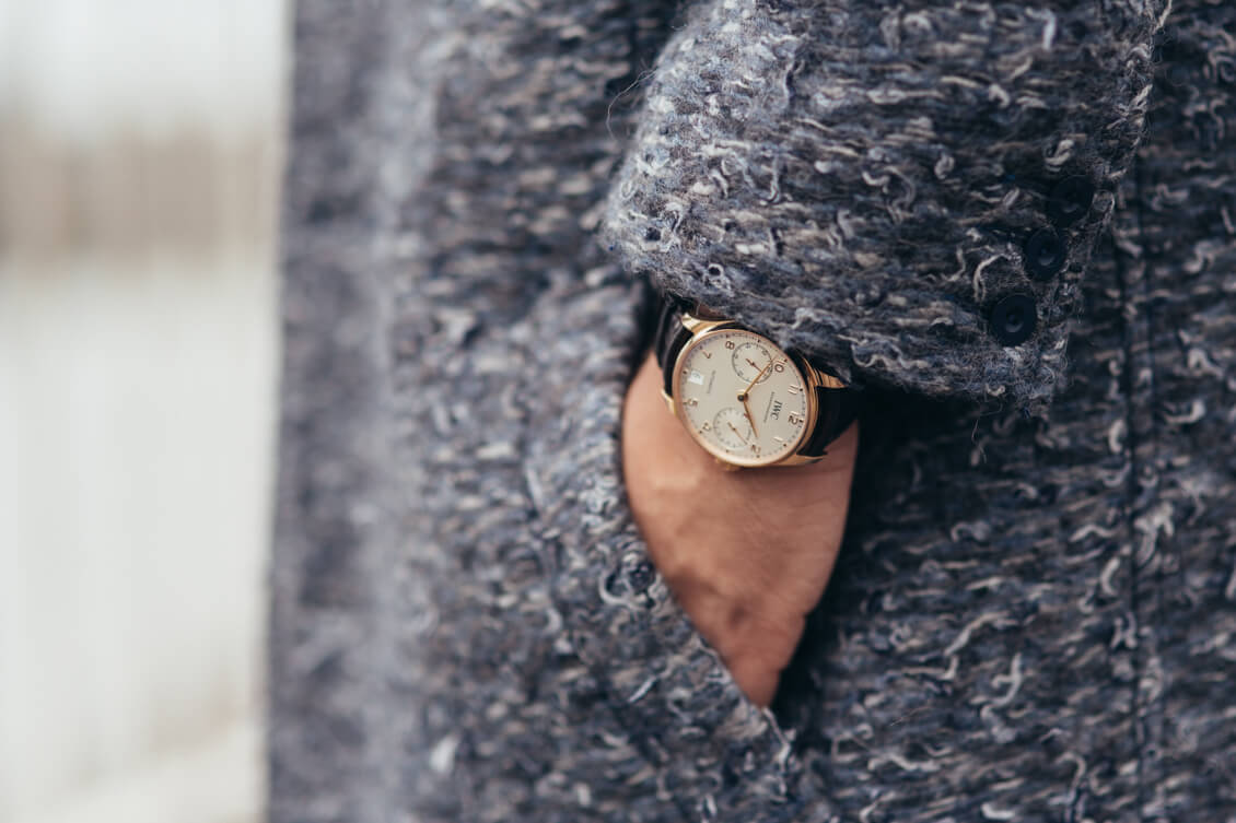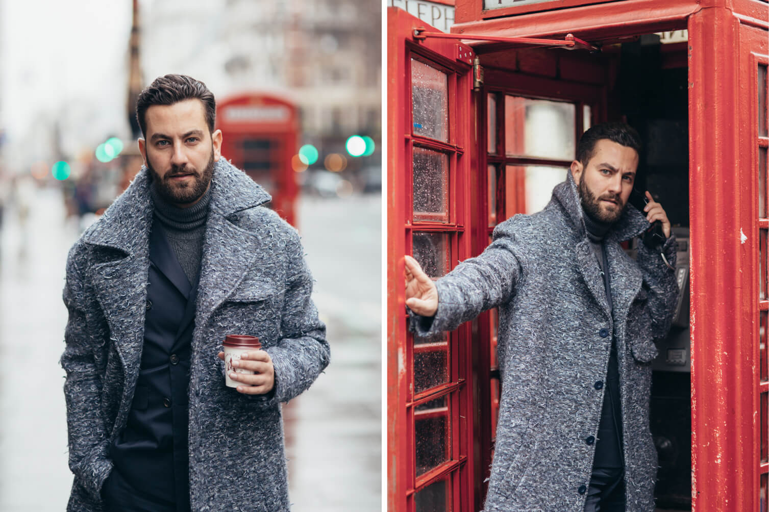 Keeping track of time during such a busy period of the year is an essential manner of any respected gentleman. The nature of running around London from show to presentations and from events to parties is made easy when accompanied with a classic wristwatch. My IWC watch with its 7 day power reserve keeps my hands free for everything else! It’s rose gold detailing and brown leather strap make it the perfect choice for a day to night look. I complete my outfit with a cup of coffee in my hand; keeping warm and giving me the much needed energy to start my day.