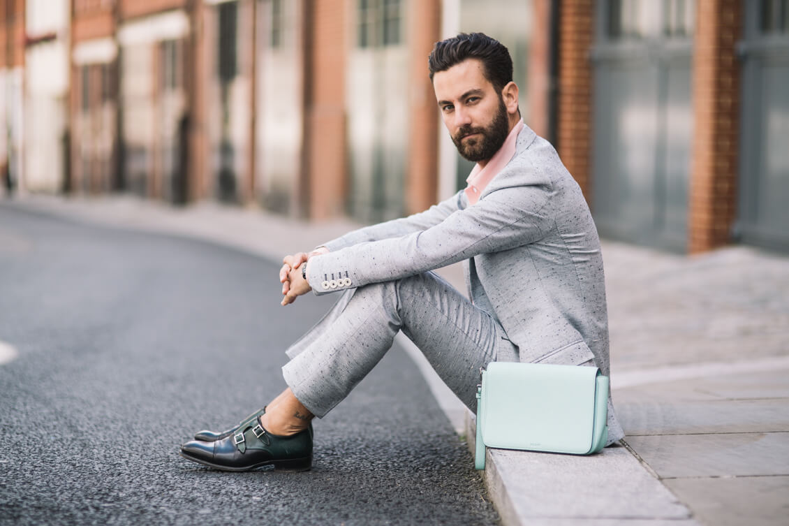 Suit, Polo T-shirt, Trench Coat and Men’s leather clutch: Bally