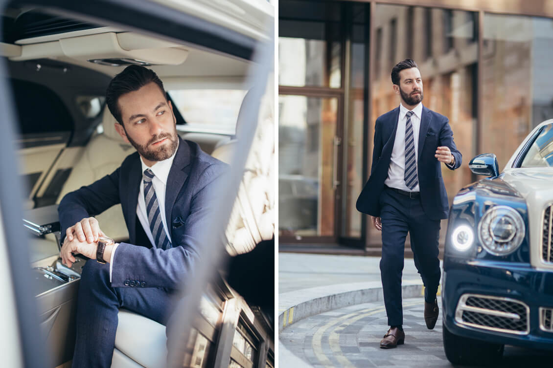 Suit: Pal Zileri, Shirt and Tie: Hugo BOSS, Shoes: Ralph Lauren Purple Label, Tuxedo Jacket: Hardy Amies, Watch: IWC Photos: Jake Armstrong