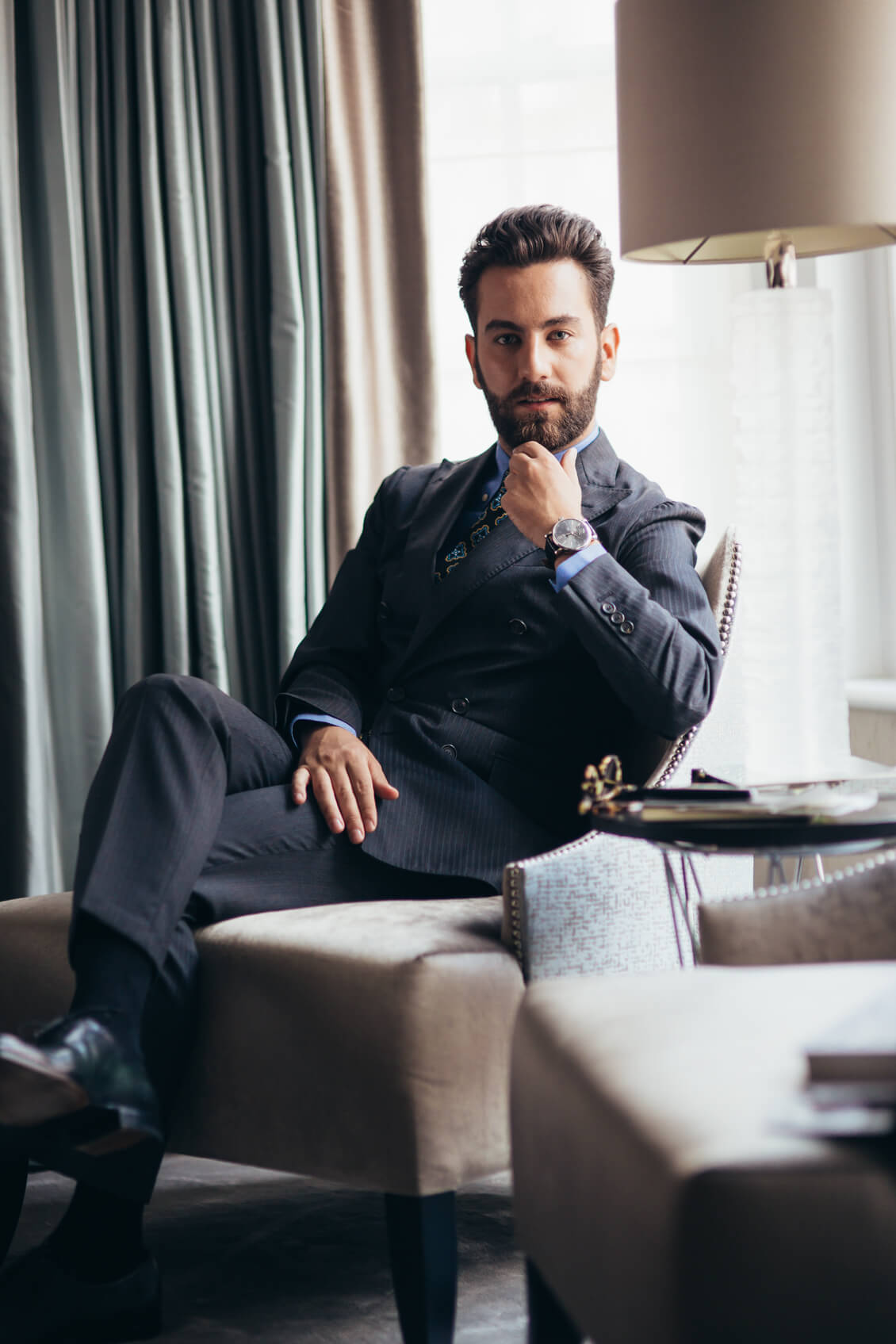 Suit: Dsquared2, Shirt: Brooks Brothers, Tie: Prada, Watch: IWC Portofino hand-wound big date