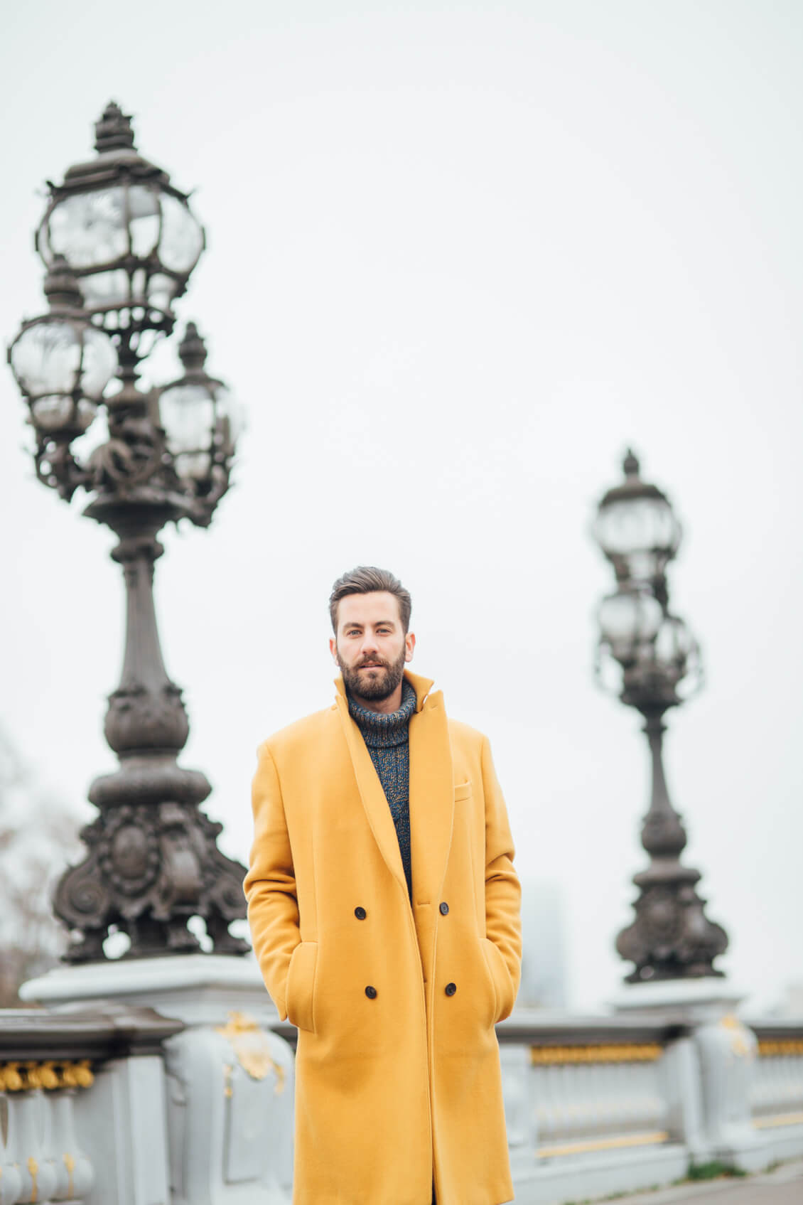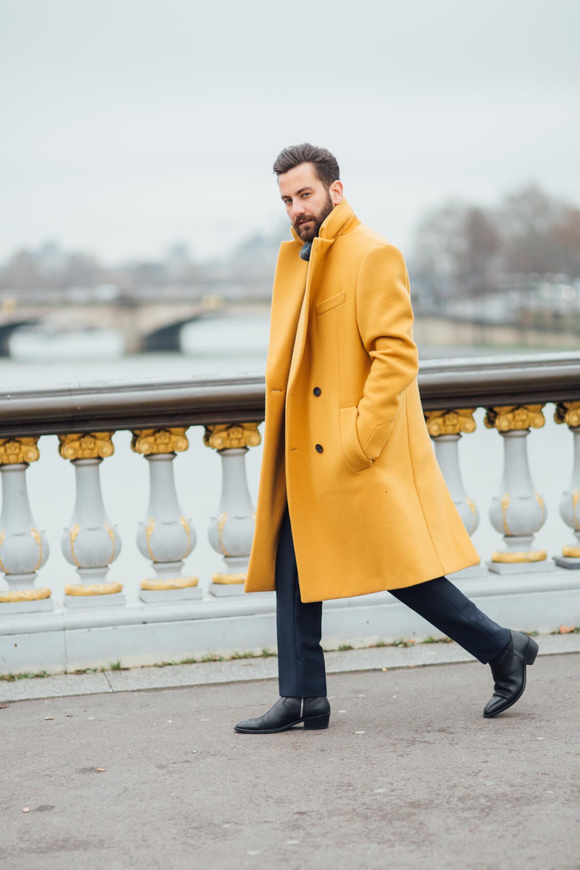 Honestly, I’ve surprised myself this season.. as I dared to wear some beautiful colourful coats and felt incredibly bold yet savvy in them all. Yellow is definitely an usual colour for a coat yet this Berluti double breasted was love at first sight. It’s colour is striking and grabs your attention because it’s vivid and surprising. I matched it with a classic turtle neck and kept warm in Paris during the menswear shows last week. It’s fascinating how men’s coats are now the key pieces to make or break an outfit and I’m loving the challenge! A piece that will remain stylish for many years to come.