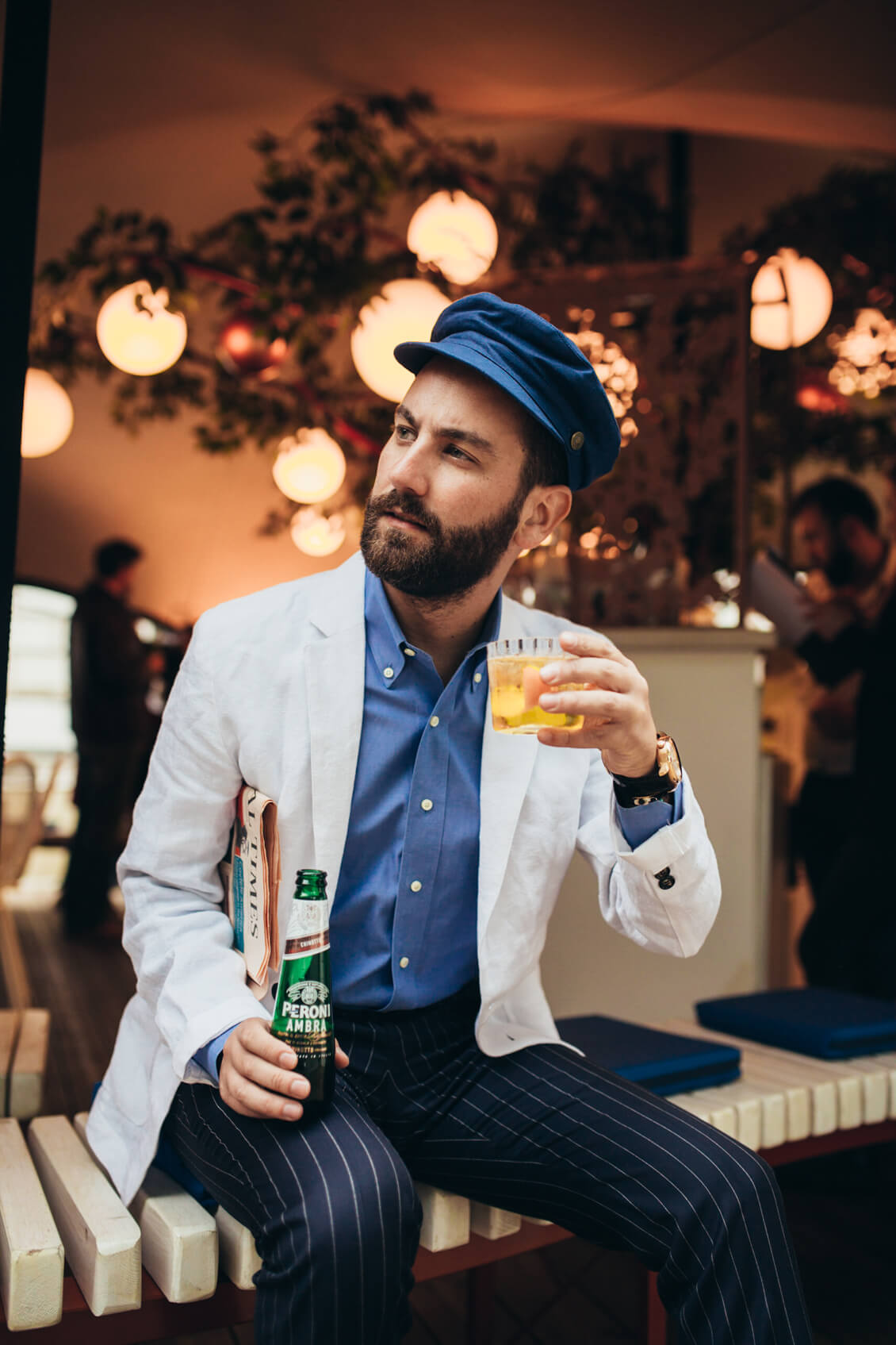 My secret to keeping fresh and energized during London Fashion Week is including LAB SERIES MAX LS Matte Renewal Lotion (for immediate younger looking skin), MAX LS Instant Eye lift (for instantly smoother and firmer eye areas) and BB Tinted Moisturiser SPF 15 (for skin hydration and SPF protection) in my everyday beauty routine (now available to buy at labseries.co.uk). After prepping myself for the day, i head straight to Brooks Brothers on Regents street for a fitting. Tailored suits and well fitted garments, are they key to the ultimate gentleman look. I pass by my master barber Stefan Avanzo – how could i not? I couldnt complete my look without him! He grooms me and gets me ready for the Hackett – one for the boys – charity event. I stroll through Church’s and I am fascinated by their ability to create new styles in ways that seem to be instant classics! The last stop is a refreshing visit to the Somerset House with the joyful surprise aperitivo – by Peroni Ambra. I’m all set!
